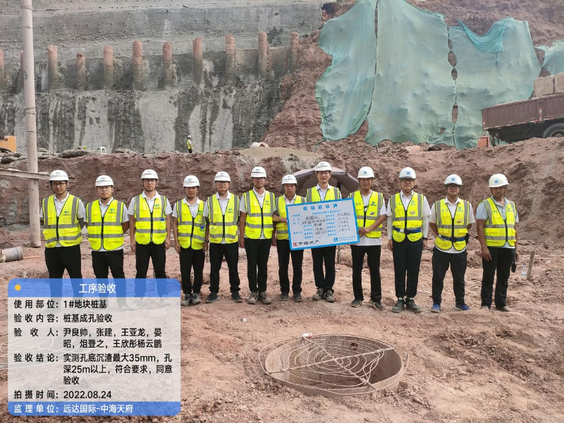 这两个月的时间,尽管面临重重困难,远达国际成都超高层项目监理部全体成员发扬远达人不怕苦、不怕累的精神,脚踏实地,稳扎稳打,与项目各参建方同心协力,排除万难,顺利完成了桩基施工这一重要任务,为开始底板施工创造有利条件。在今后的工作中,项目监理部也将继续发扬远达人不忘初心,牢记使命,深入践行大国工匠精神,以更高的标准要求自己,进行规范化、精细化、标准化管理,树立公司形象,为建设单位提供优质的监理服务,打造精品工程!