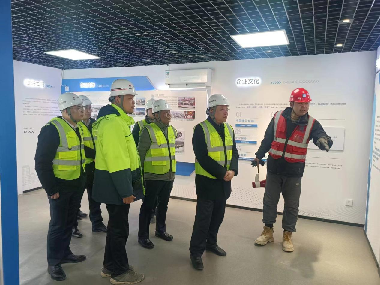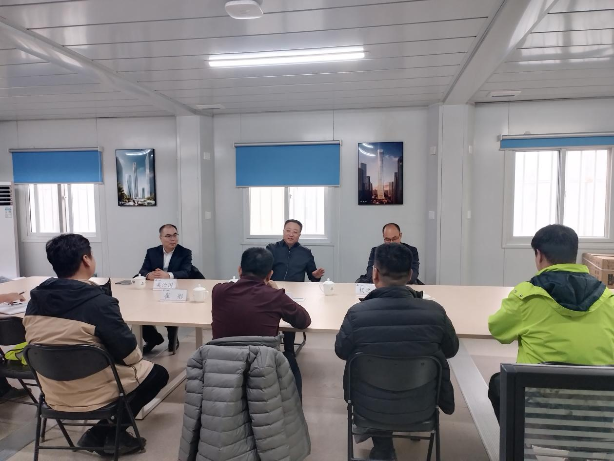 董晓辉一行深入施工现场,对钢结构安装焊接,“零碳”工程打造与能耗,施工现场建设安排情况,工程施工进度、难点和质量安全管理等方面进行了全方位了解,随后在项目会议室召开座谈会。