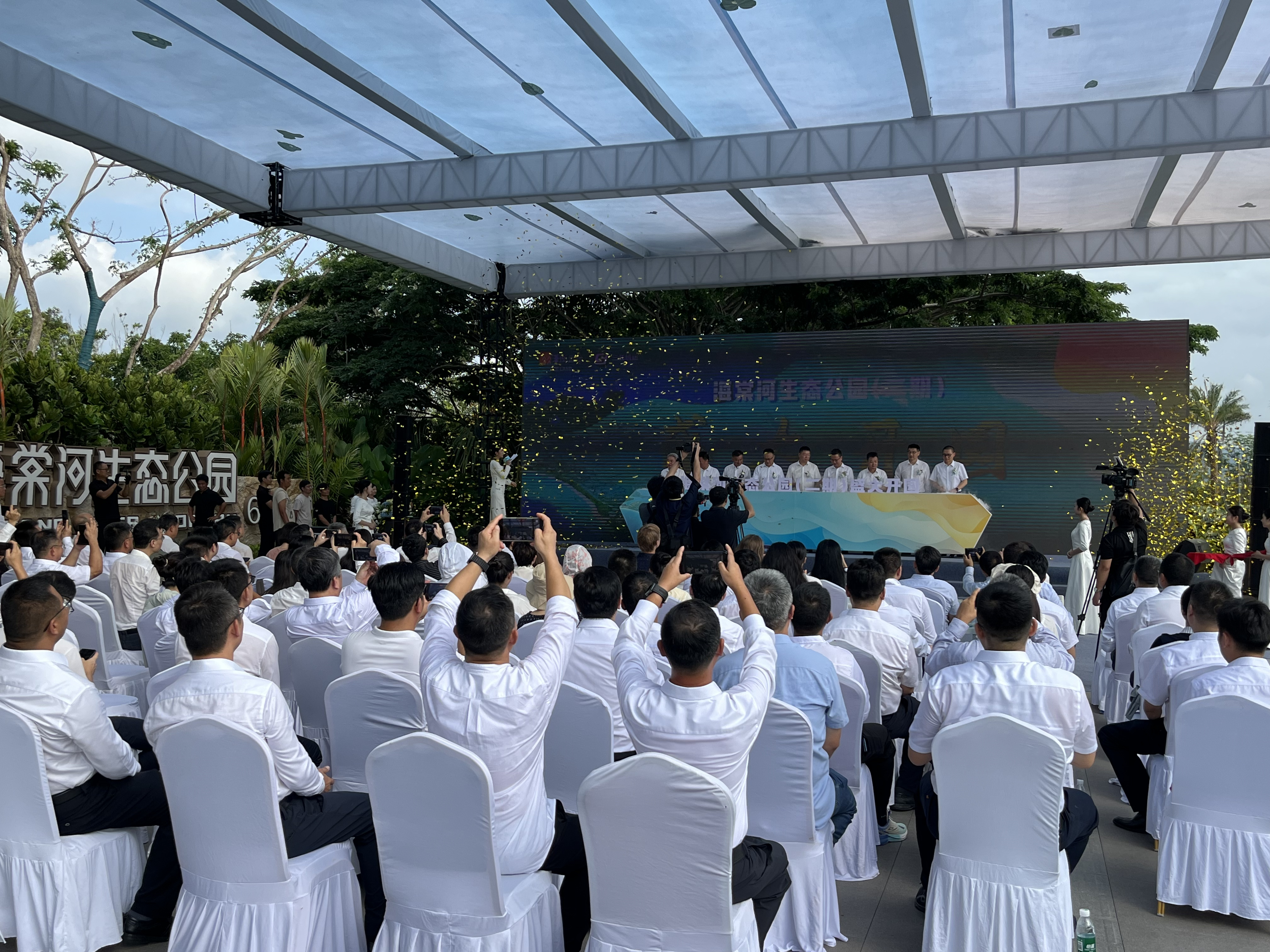 2025 年 6 月 9 日上午 8:30,三亚海棠河水系综合治理二期项目在龙江路与海棠北路交叉口北侧广场举行了盛大的海棠河生态公园(二期)开园仪式。此次开园仪式标志着三亚在城市生态建设与景观提升方面迈出了重要一步,吸引了众多市民与游客的关注。