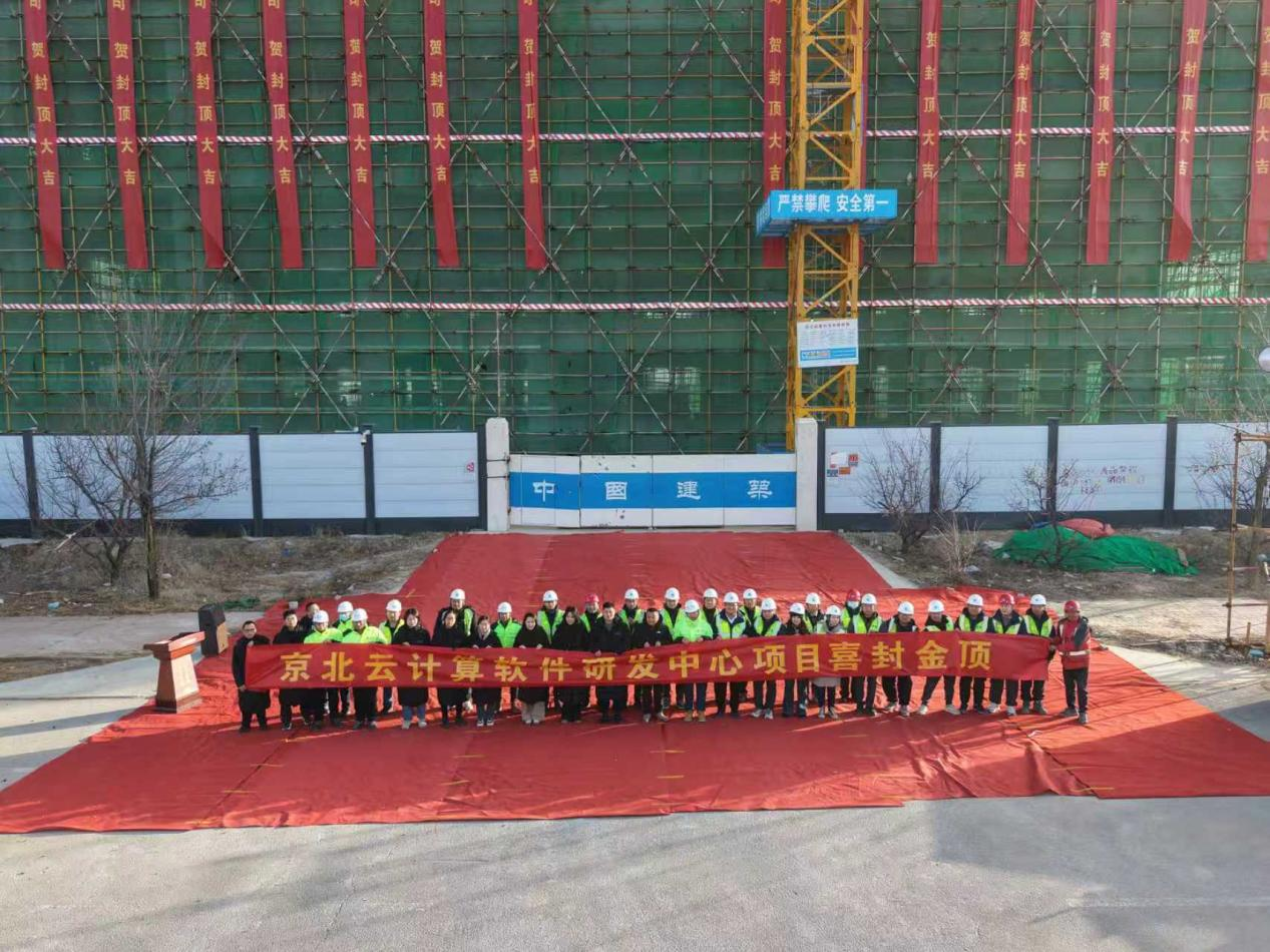 11月29日,随着最后一块叠合板成功吊装就位,京北云计算软件研发中心数据中心楼按计划圆满封顶,各参建单位相关负责人出席封顶仪式。