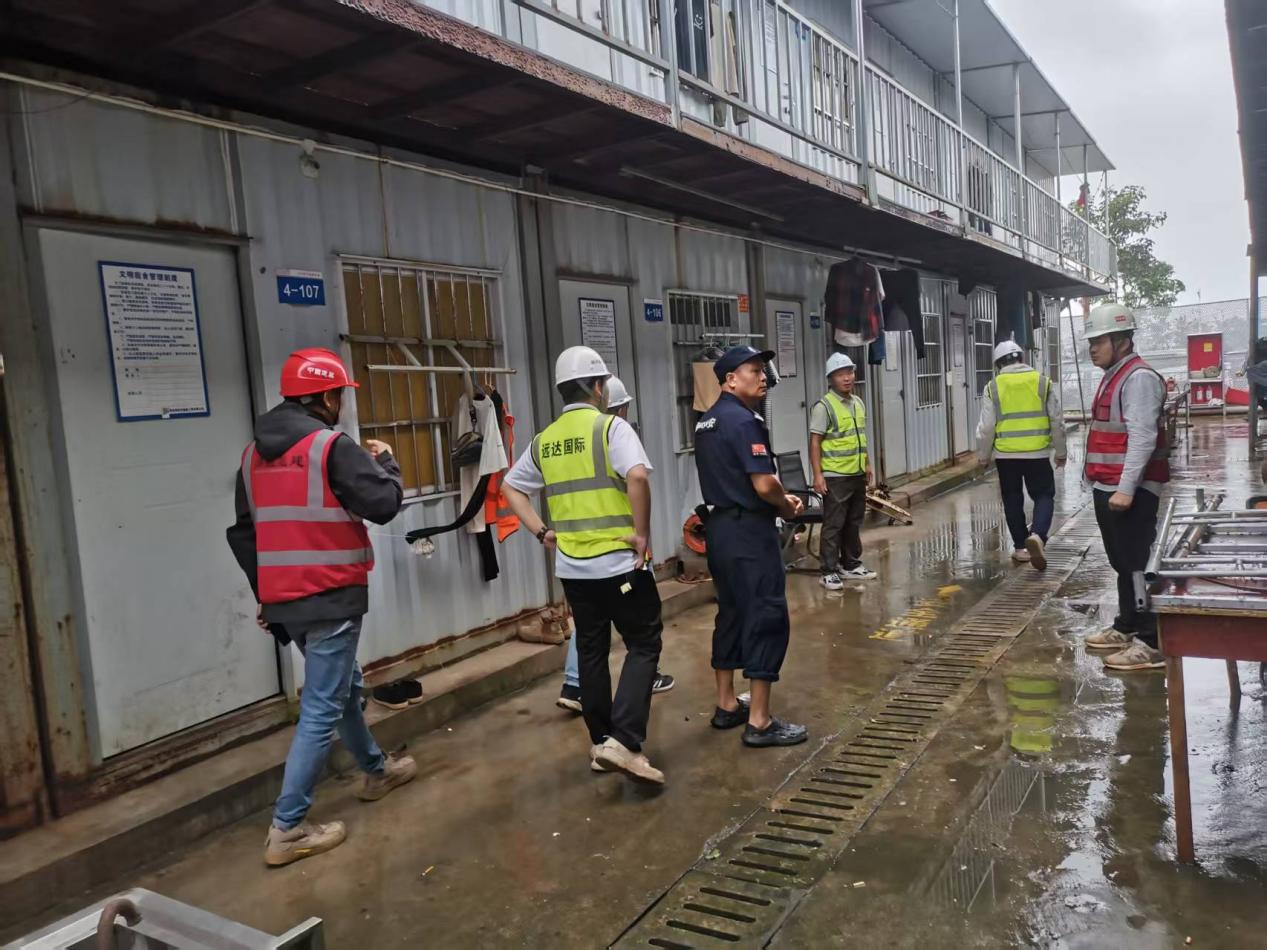 检查组重点排查了生活区临时板房的结构稳定性、消防设施的配备情况、用电安全及卫生防疫措施。针对发现的问题,检查组现场提出了明确整改要求,并督促施工单位立即落实到位。远达国际项目团队凭借丰富的专业管理经验,为隐患整改方案提供了精准技术指导,确保整改措施科学高效可行。