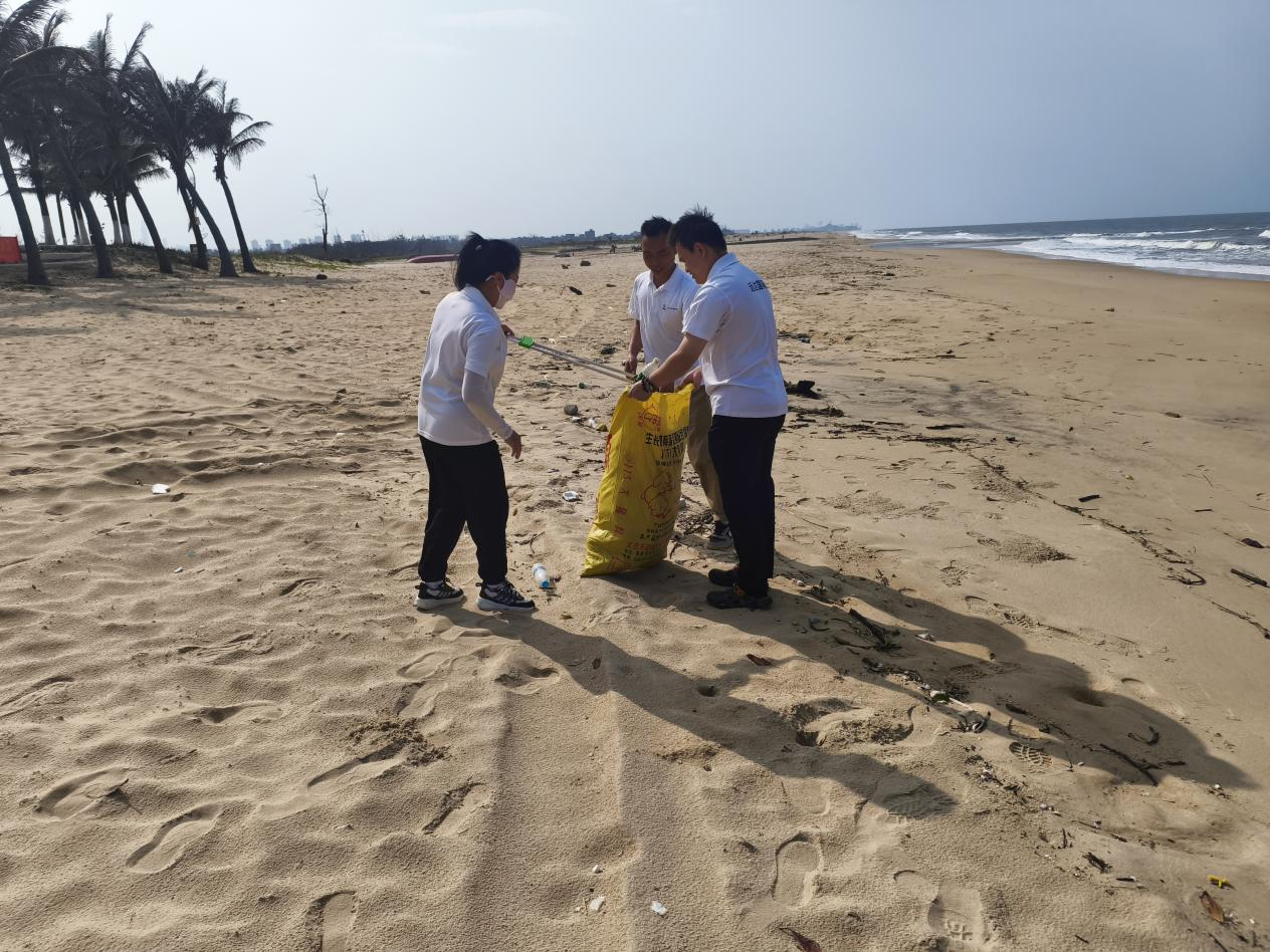 活动现场,志愿者们身着统一工装,手持垃圾夹、环保袋等工具,分组对海滩及周边绿化带进行了细致的清理。面对塑料瓶、泡沫箱、废弃渔网等难以处理的垃圾,他们采用“全面搜寻+重点清理”的方式,深入潮间带区域,将垃圾分类后投放至指定回收点。