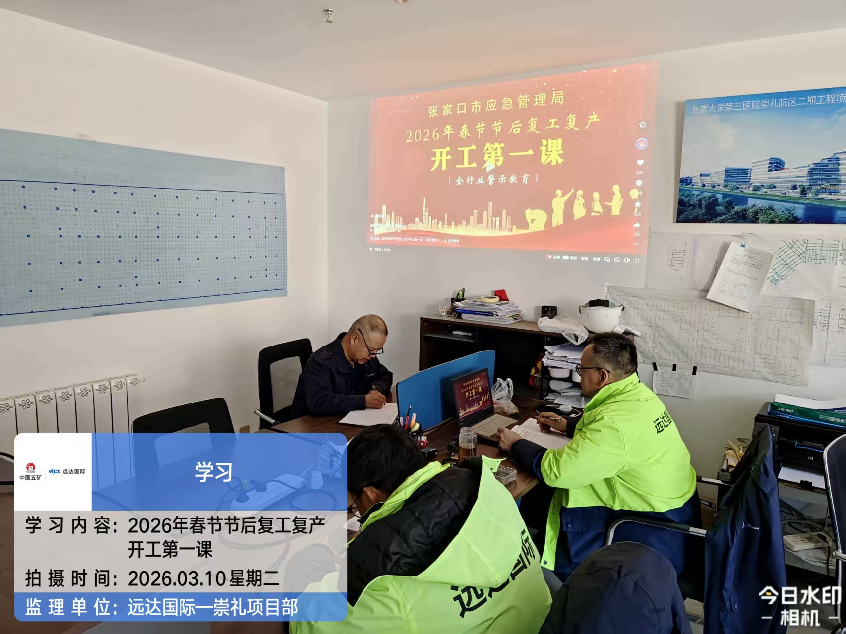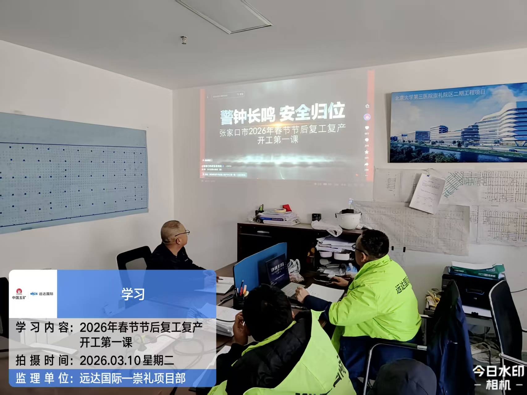 为进一步强化项目全体人员安全意识,提升春节复工复产期间的安全管理水平,切实筑牢安全防线,北京大学第三医院崇礼院区二期项目于2026年3月10日组织项目团队开展2026年春节后复工复产开工第一课的学习教育。